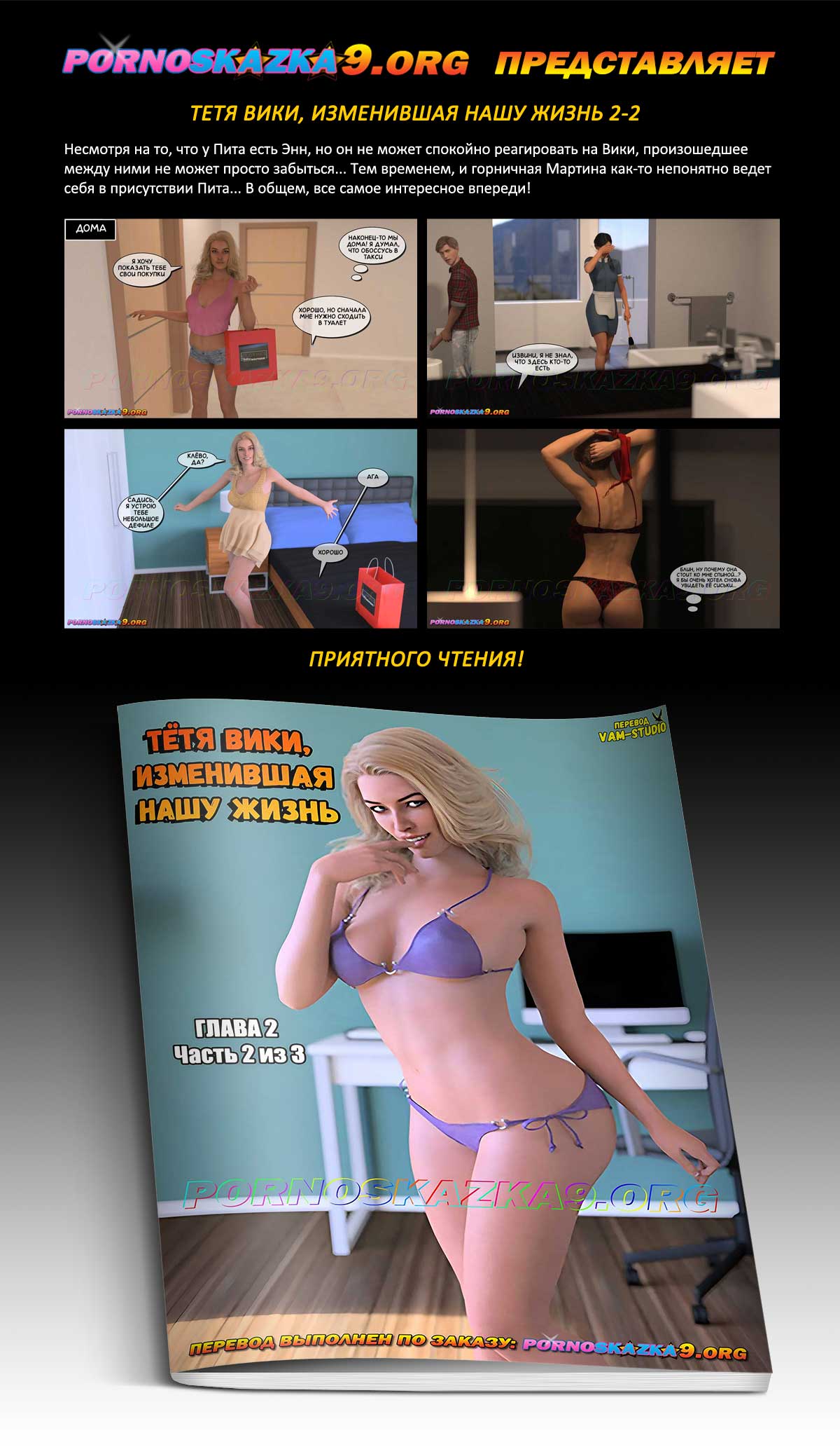 Порно комикс «Тетя Вики, изменившая нашу жизнь. Глава 2. Часть 2 из 3.» Несмотря на то, что у Пита есть Энн, но он не может спокойно реагировать на Вики, произошедшее между ними не может просто забыться… Тем временем, и горничная Мартина как-то непонятно ведет себя в присутствии Пита… В общем, все самое интересное впереди!